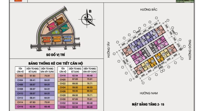 Mặt bằng thiết kế tổng thể căn hộ Tầng 2 – 15 chung cư HH02 – 2C khu B1.4 Thanh Hà