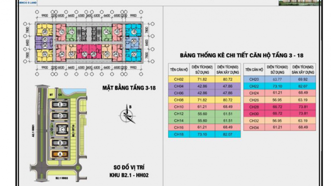Mặt bằng thiết kế tổng thể căn hộ Tầng 3 – 18 chung cư HH02A, HH02B khu B2.1 Thanh Hà