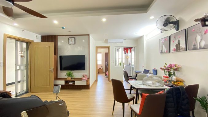 Nội thất căn hộ tôi đã làm đầy đủ bao gồm: Sàn gỗ, tủ bếp, nóng lạnh, điều hòa, giường, tủ, tủ lạnh, máy giặt, sofa, bàn ăn… khách hàng chỉ cần mang đồ cá nhân vào ở.